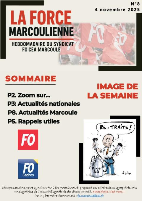Chaque semaine, votre syndicat FO CEA MARCOULE propose à ses adhérents et sympathisants une synthèse de l’actualité syndicale du site et au-delà.