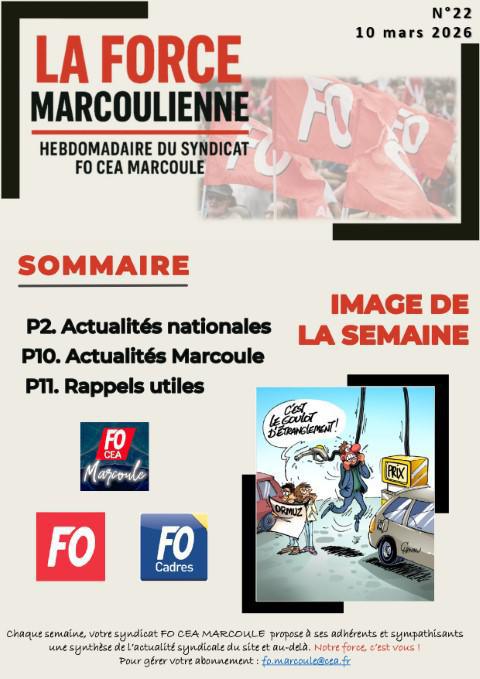 Chaque semaine, votre syndicat FO CEA MARCOULE propose à ses adhérents et sympathisants une synthèse de l’actualité syndicale du site et au-delà.